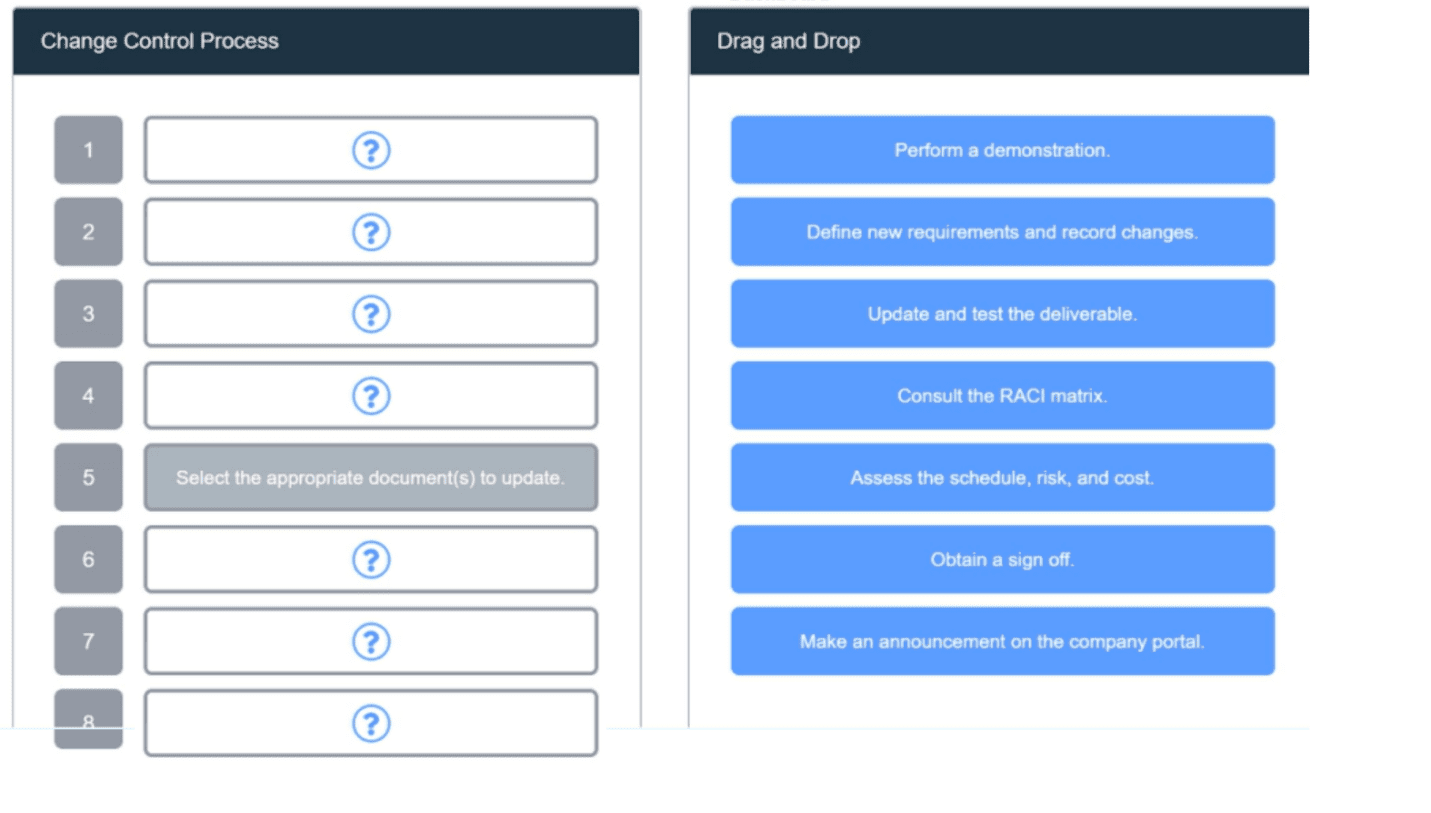 • Part 1: Drag and drop each task, placing them in the correct order based on the project change