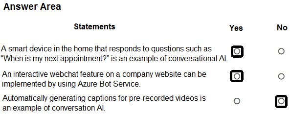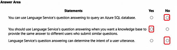 For each of the following statements, select Yes if the statement is true. Otherwise, select No.