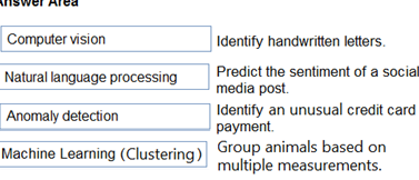 DRAG DROP Match the machine learning tasks to the appropriate scenarios.