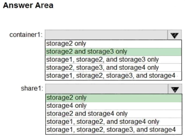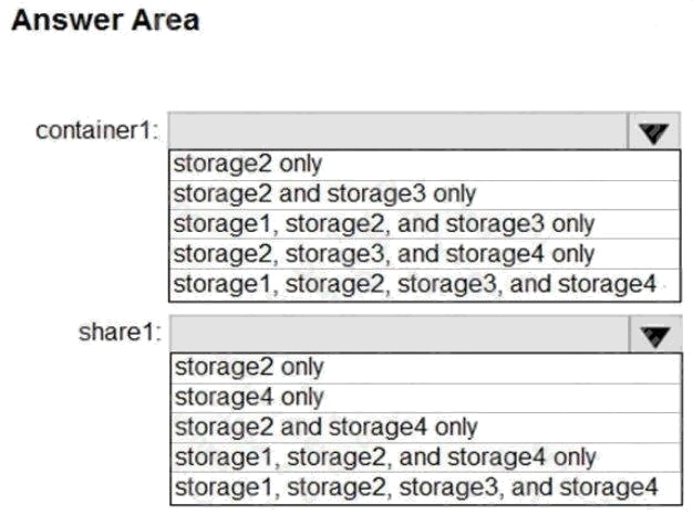 Which storage accounts should you use for each resource? To answer, select the appropriate options in the answer area.