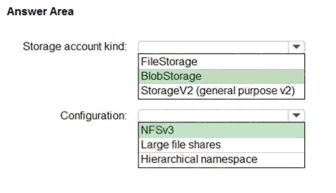 Reference: https://docs.microsoft.com/en-us/azure/storage/blobs/network-file-system-protocol-support