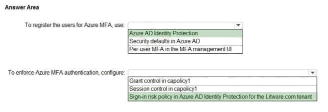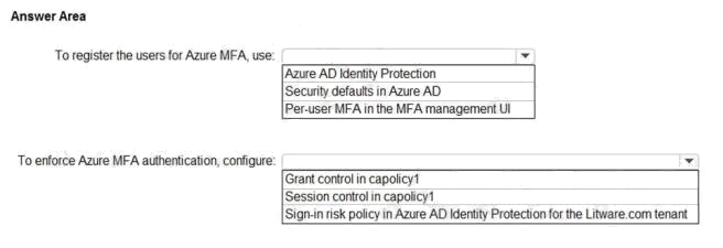 Scenario: The Litware.com tenant has a conditional access policy named capolicy1. Capolicy1 requires that when users