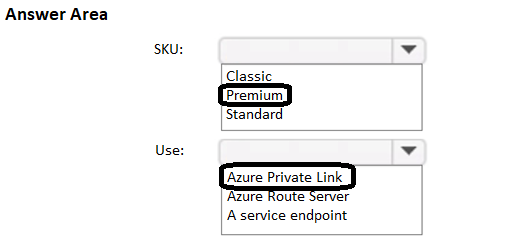 You need to identify which Front Door SKU to configure, and what to use to route the traffic to the load balancers. The solution must minimize costs.