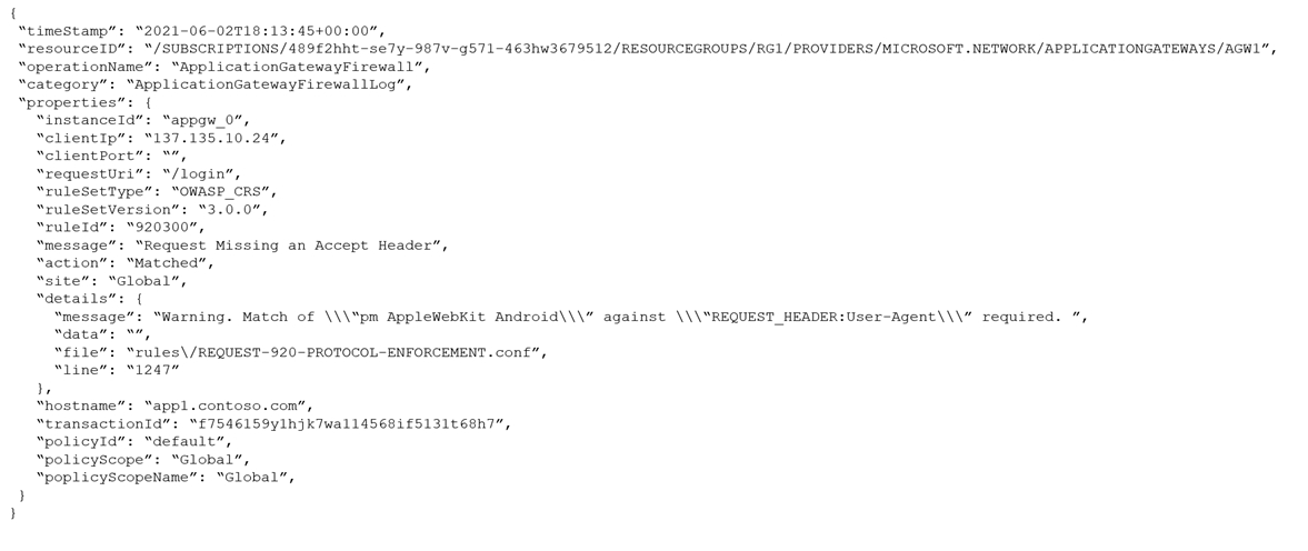 The log shows that WAF rule with ruleId 920300 was trigged. We should disable the WAF rule that has a ruleId 920300.