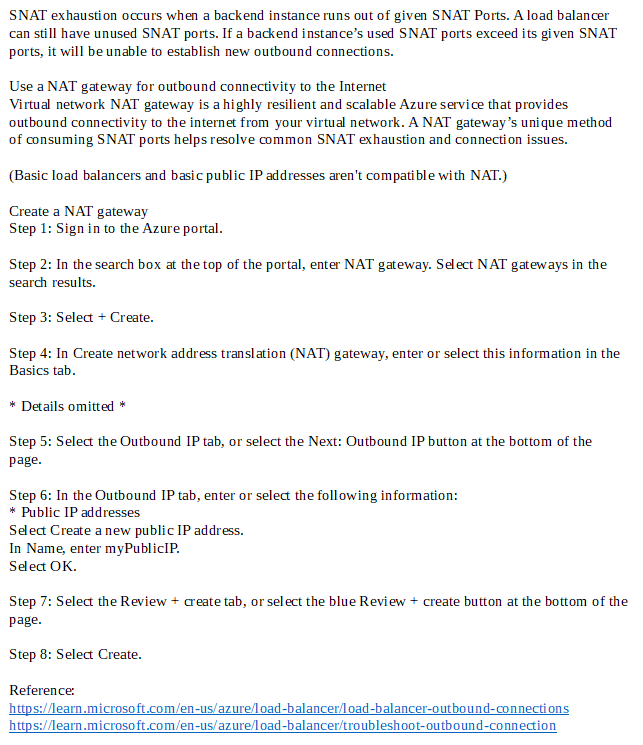 You need to minimize the risk of SNAT port exhaustion. The solution must minimize administrative effort.
