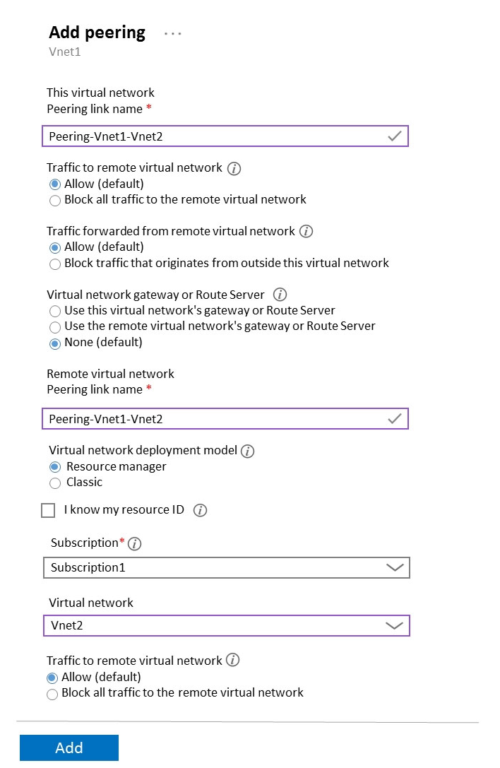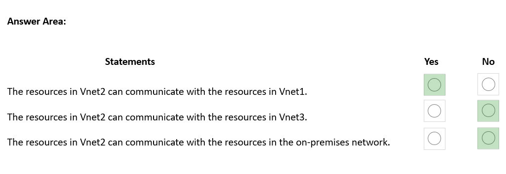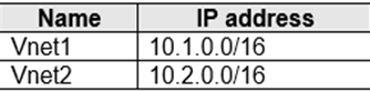You have a peering connection between Vnet1 and Vnet2 as shown in the Peering-Vnet1-Vnet2 exhibit.