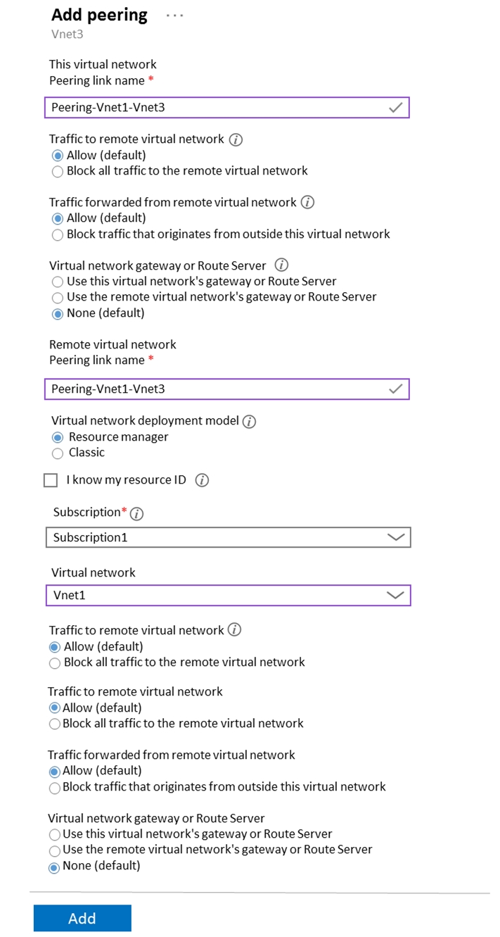 You have a peering connection between Vnet1 and Vnet3 as shown in the Peering-Vnet1-Vnet3 exhibit.