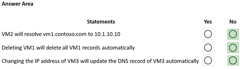 The manual DNS record will overwrite the auto-registered DNS record so VM1 will resolve to 10.1.10.9.