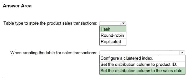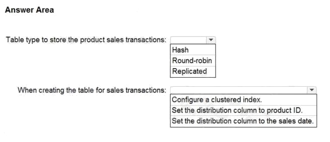 You need to implement an Azure Synapse Analytics database object for storing the sales transactions data. The solution