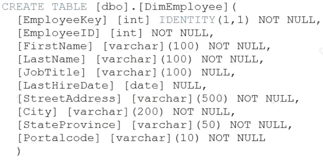 You have a table in an Azure Synapse Analytics dedicated SQL pool. The table was created by using the following Transact-