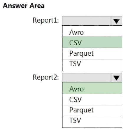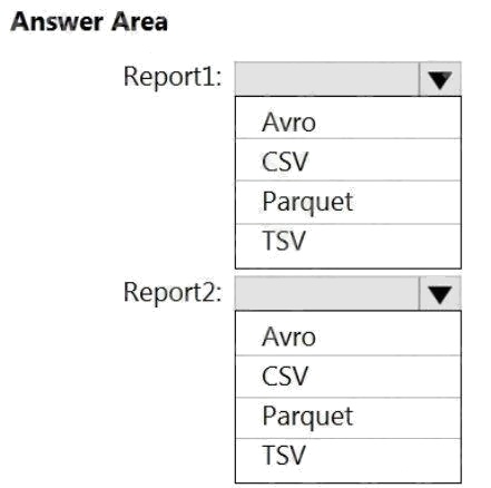 You need to recommend in which format to store the data in the data lake to support the reports. The solution must minimize