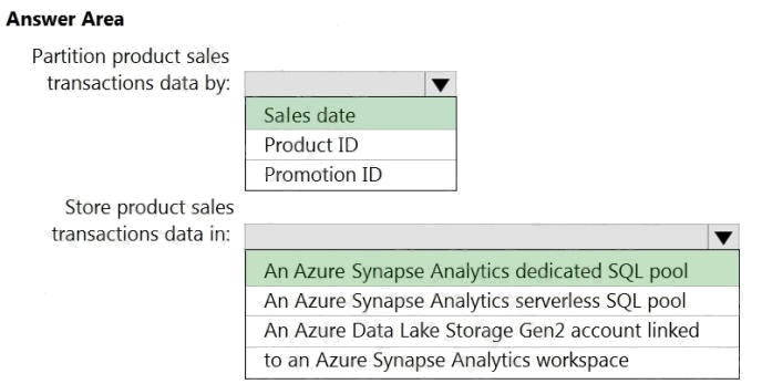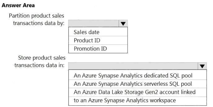 You need to design the partitions for the product sales transactions. The solution must meet the sales transaction dataset