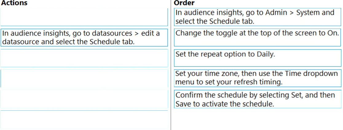 DRAG DROP As a Customer Data Platform Specialist, you set up audience insights as the new Customer Data Platform.