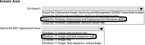 HOTSPOT You have a server named Server1 and computers that run Windows 10. Server1 has the Microsoft Deployment Toolkit (MDT) installed.