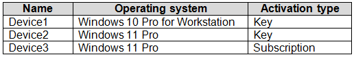 DRAG DROP You have a Microsoft 365 subscription that contains the devices shown in the following table.