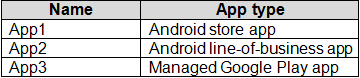 You add apps to Intune as shown in the following table.