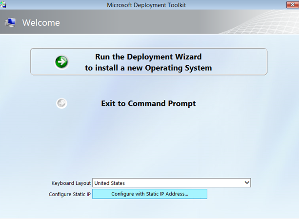 When computers start from the LiteTouchPE_x64.iso image and connect to MDT1, the welcome screen appears as shown in the following exhibit.