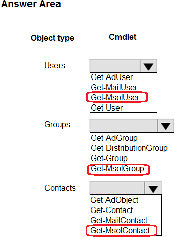 Which cmdlets should you use? To answer, select the appropriate options in the answer area.