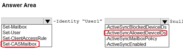 HOTSPOT A company uses Exchange Online. The Exchange ActiveSync access setting is configured to quarantine.