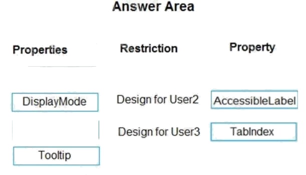 Which properties should you configure? To answer, drag the appropriate properties to the correct restrictions. Each property