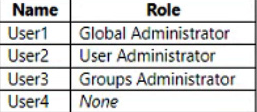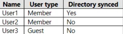 Your company has an Azure AD tenant that contains the users shown in the following table.