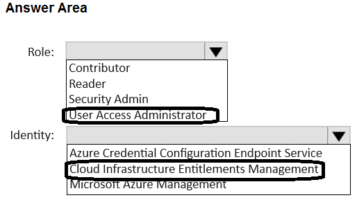 Which role should you assign and to which identity should you assign the role? To answer, select the appropriate options in the answer area.