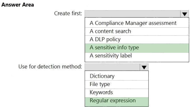 Reference: https://docs.microsoft.com/en-us/microsoft-365/compliance/create-a-custom-sensitive-information-