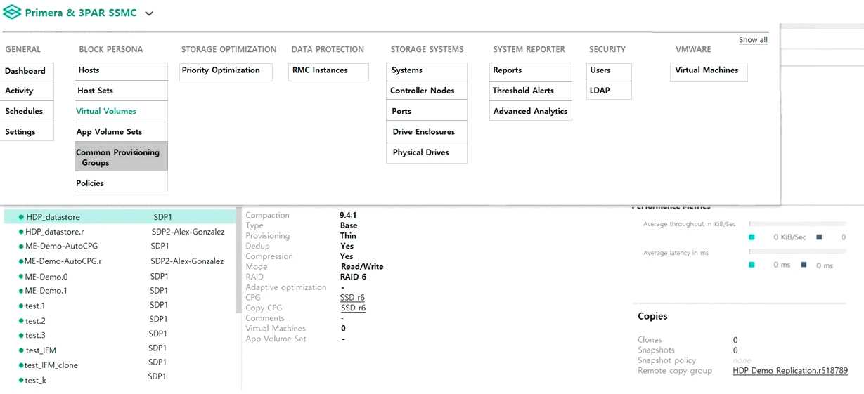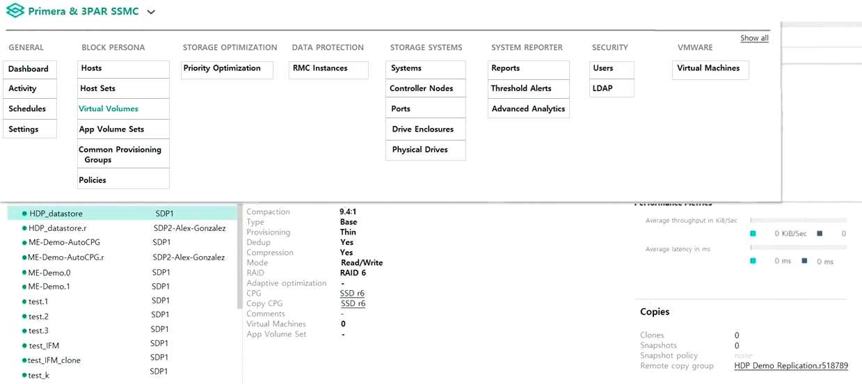 You are configuring a new HPE array and verifying properties of a set of volumes.