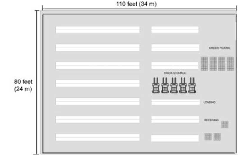 This warehouse has the dimensions shown in the exhibit. The warehouse is 20 feet (6 m) high up to a