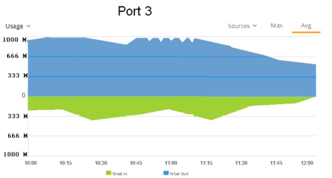 the network, and the results are shown in the exhibit. Each of these ports is a 1Gbps port.