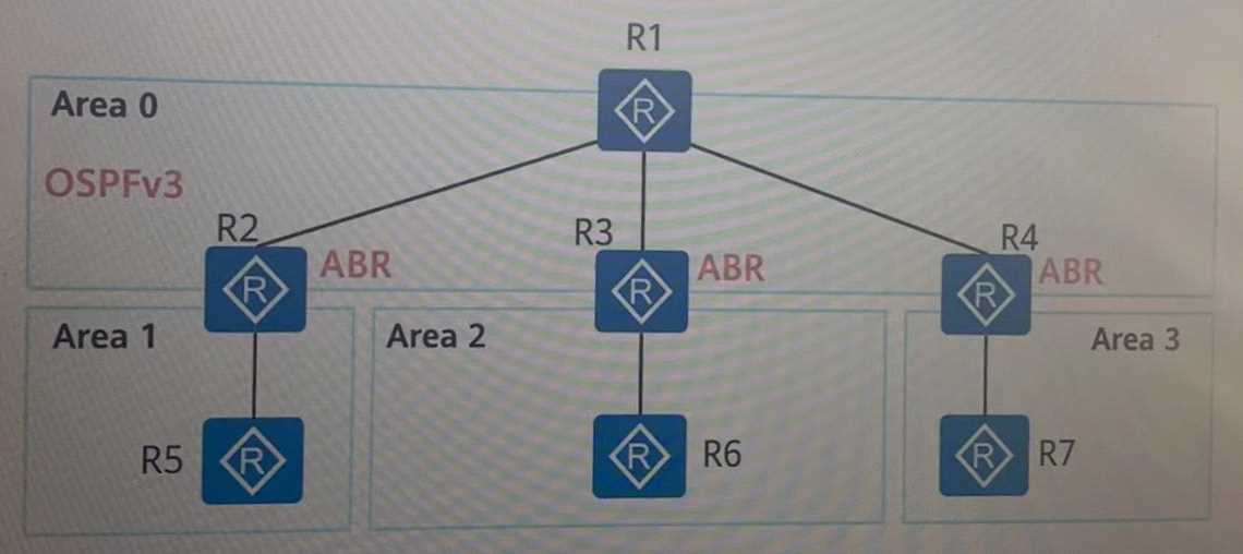 In the topology shown in the figure, the entire network runsOSPFv3agreement inNoIn the case of