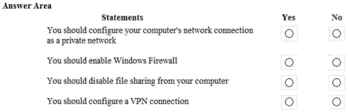 For each of the following statements, select Yes if the statement is true. Otherwise, select No.