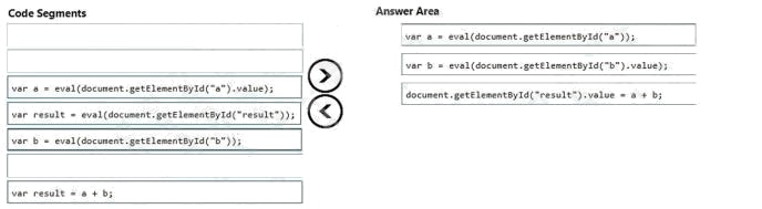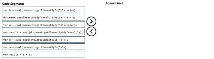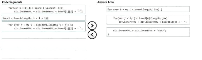 How should you complete the code? To answer, select the appropriate code segments in the answer area.