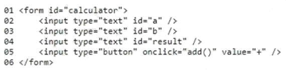 You must create a function named add() that adds the values in the a and b input elements and displays the result in the