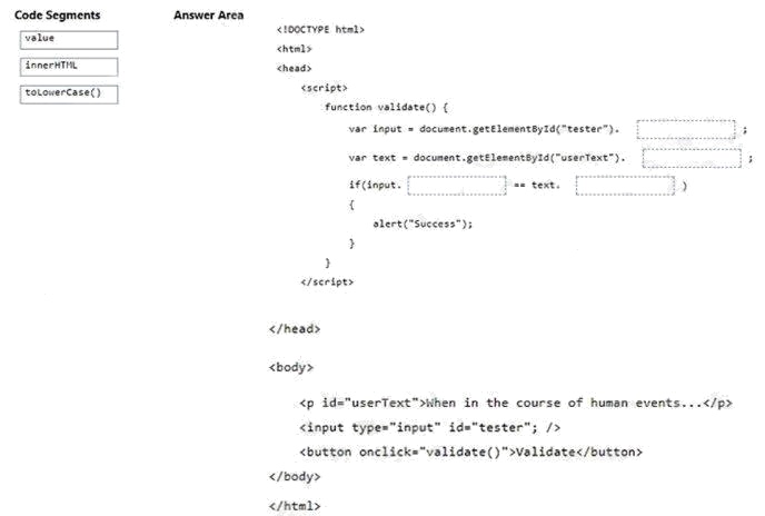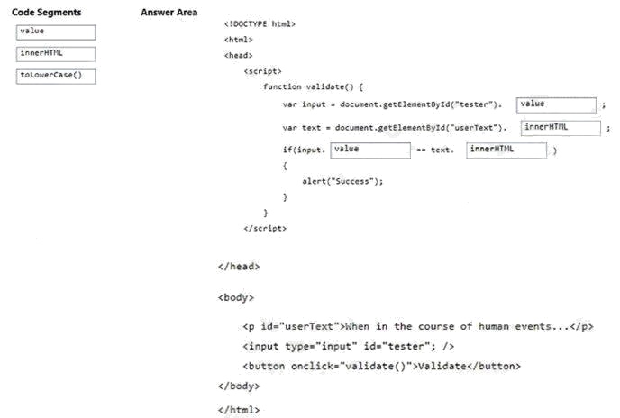 You are creating a web page that tests a users ability to accurately type text. The validation should be case-insensitive.