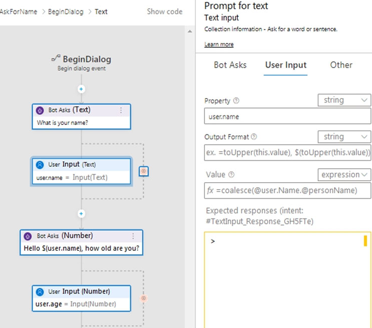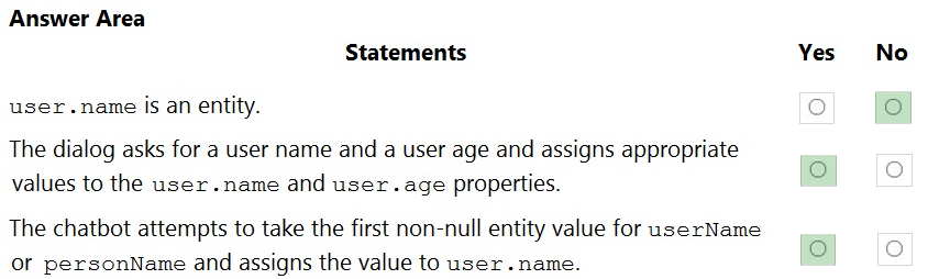 HOTSPOT You are building a chatbot by using the Microsoft Bot Framework Composer.