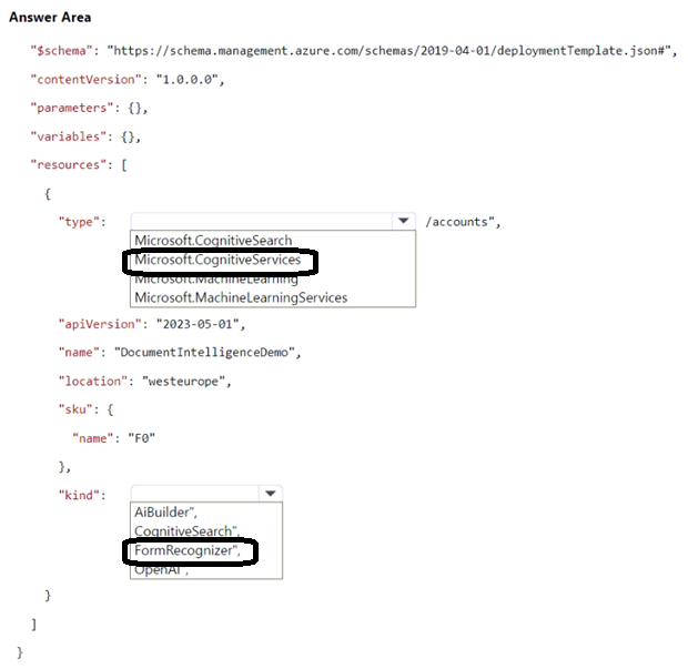 How should you complete the Azure Resource Manager (ARM) template? To answer, select the appropriate options in the answer area.