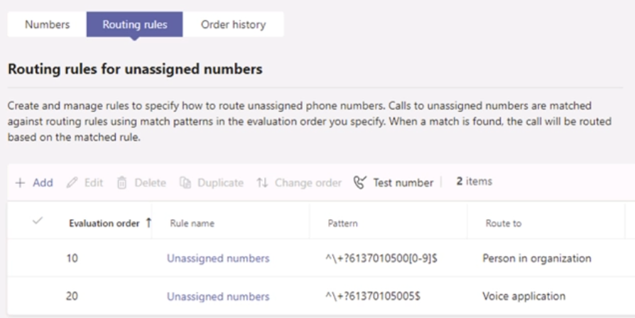 You have routing rules for unassigned phone numbers as shown in the following exhibit.