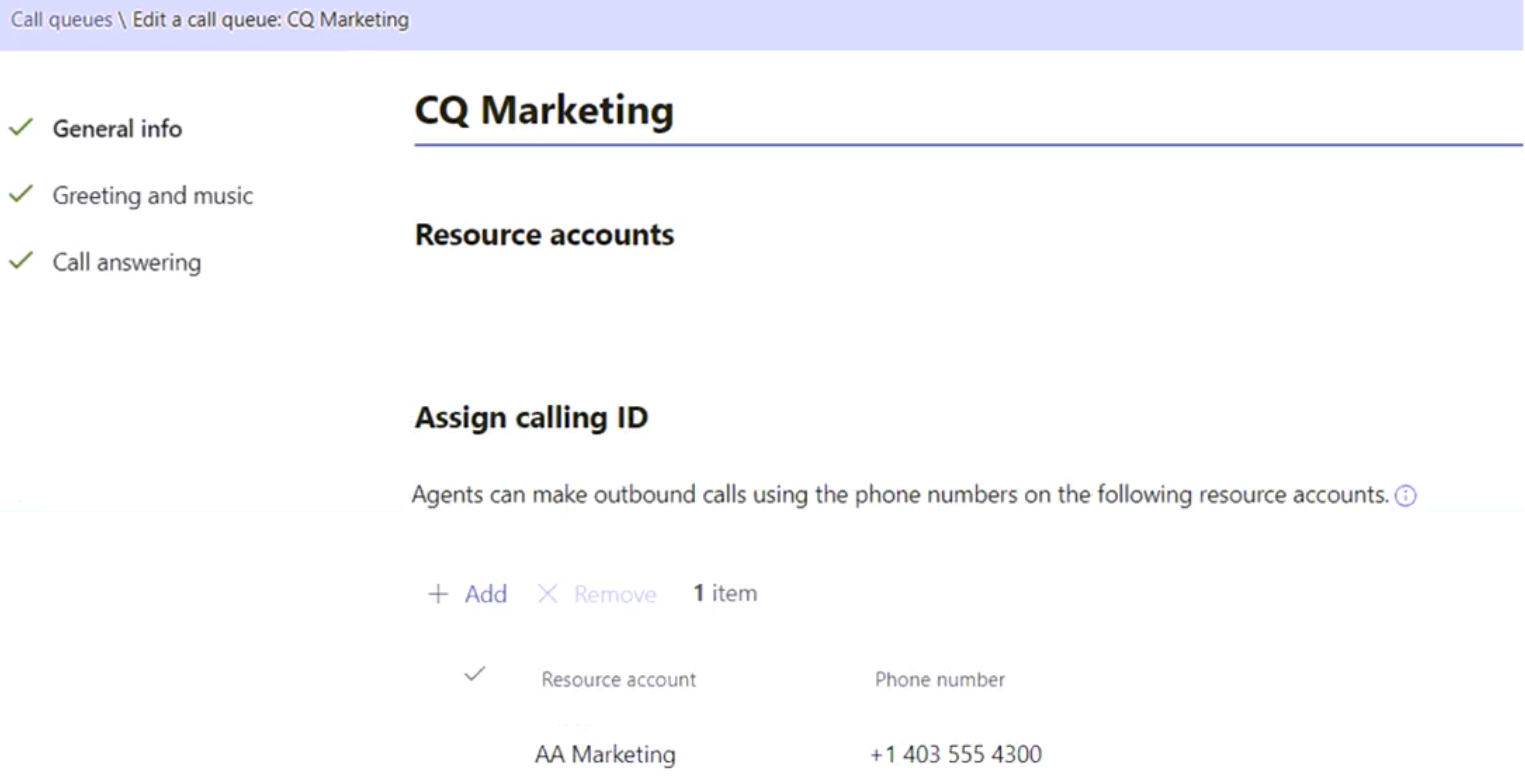 The General info settings are configured as shown in the CQ Marketing exhibit. (Click the CQ Marketing tab.)
