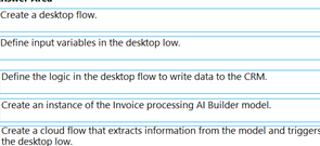 DRAG DROP You create a solution within a Microsoft Power Platform environment. The environment includes all connections required for the solution.