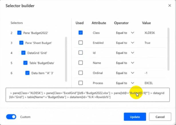HOTSPOT You are creating a custom selector for a Microsoft Excel workbook by using a Power Automate.