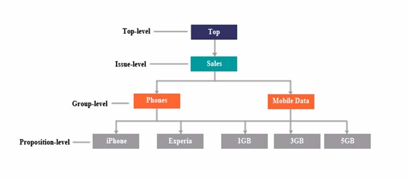 MyCo, a mobile company, uses Pega Marketing, powered by Pega Customer Decision Hub, to display marketing offers to its customers on its website. The company would like to display more relevant offers to customers based on customer behavior. The following is the proposition hierarchy in the Next-Best-Action