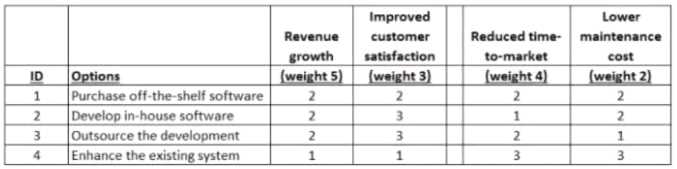 Which solution should be chosen according to the completed weighted-ranking matrix?