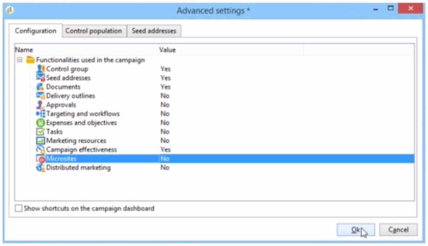 "Advanced campaign settings," a practitioner can access and modify these elements to suit the new