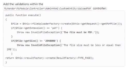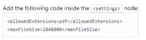 panel, the field must accept only .PDF files with size less or equal than 2 MB. So far the developer has