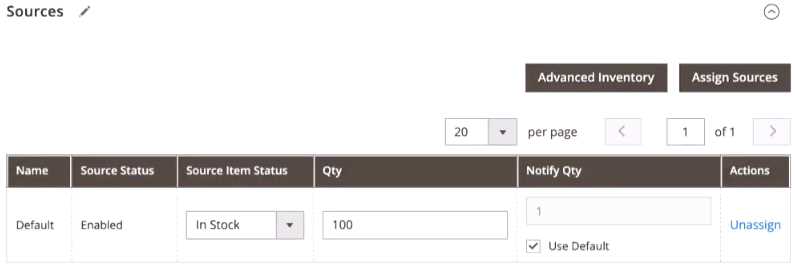 A product has some stock and quantity in the Sources panel in its edit view m the admin: