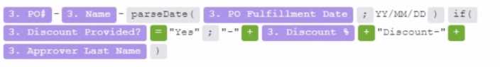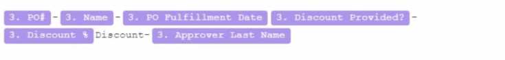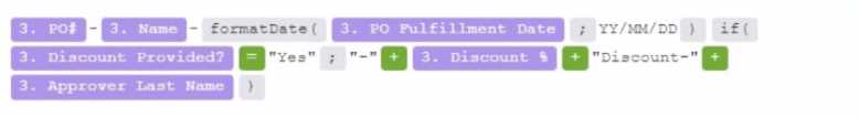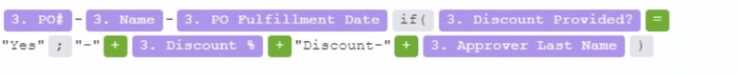 3.PO# + " - " + 3.Name + " - " + formatDate(3.PO Fulfillment Date; YY/MM/DD) + if(3.Discount