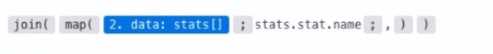 The expression join(map(2.data: stats[]; stats.stat.name); ", "):