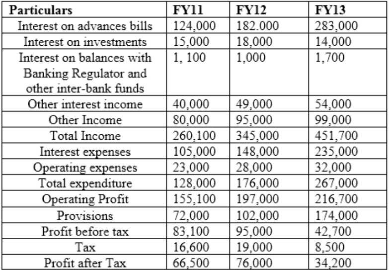Following is information related banks: