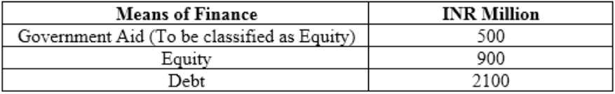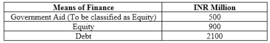 Government Aid (To be classified as Equity) 500Equity 900 Debt 2100